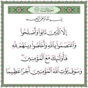 আজ আমি তোমাদের জন্যে তোমাদের দ্বীনকে পূর্নাঙ্গ করে দিলাম, তোমাদের প্রতি আমার অবদান সম্পূর্ণ করে দিলাম এবং ইসলামকে তোমাদের জন্যে দ্বীন হিসেবে পছন্দ করলাম।