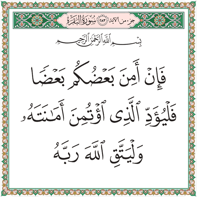 002283 فإن أمن بعضكم بعضا فليؤد الذي اؤتمن أمانته وليتق الله ربه